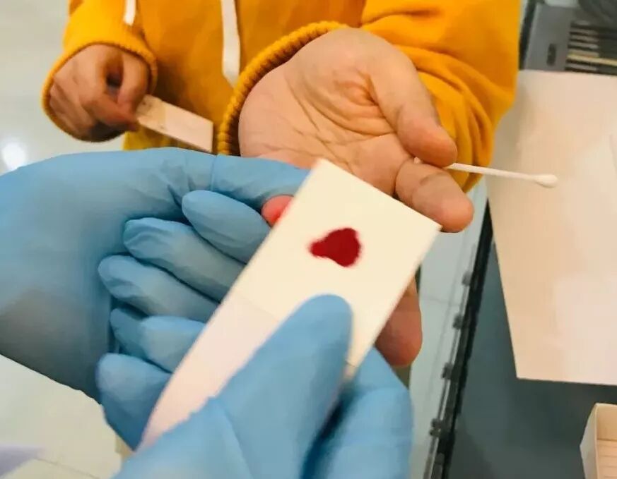 随着高盛生物研制的DNA 检验设备不断更新迭代,其检测灵敏度及对微量检材的检出率也显著得到提高,为了建立更完善的产品研发与生产质量管理规范(GMP),有必要建立全体员工DNA质控库,以控制研发与生产过程中的质量风险,防止污染和交叉污染的发生。以下为血样采集现场。